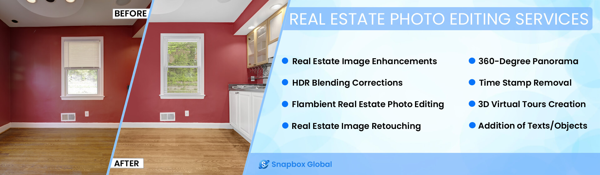 Our experienced real estate photo editors deliver high quality, enhanced photos that property, Our capabilities include photo enhancement and retouching, video editing, virtual staging, virtual renovation and real estate hdr photo editing services.